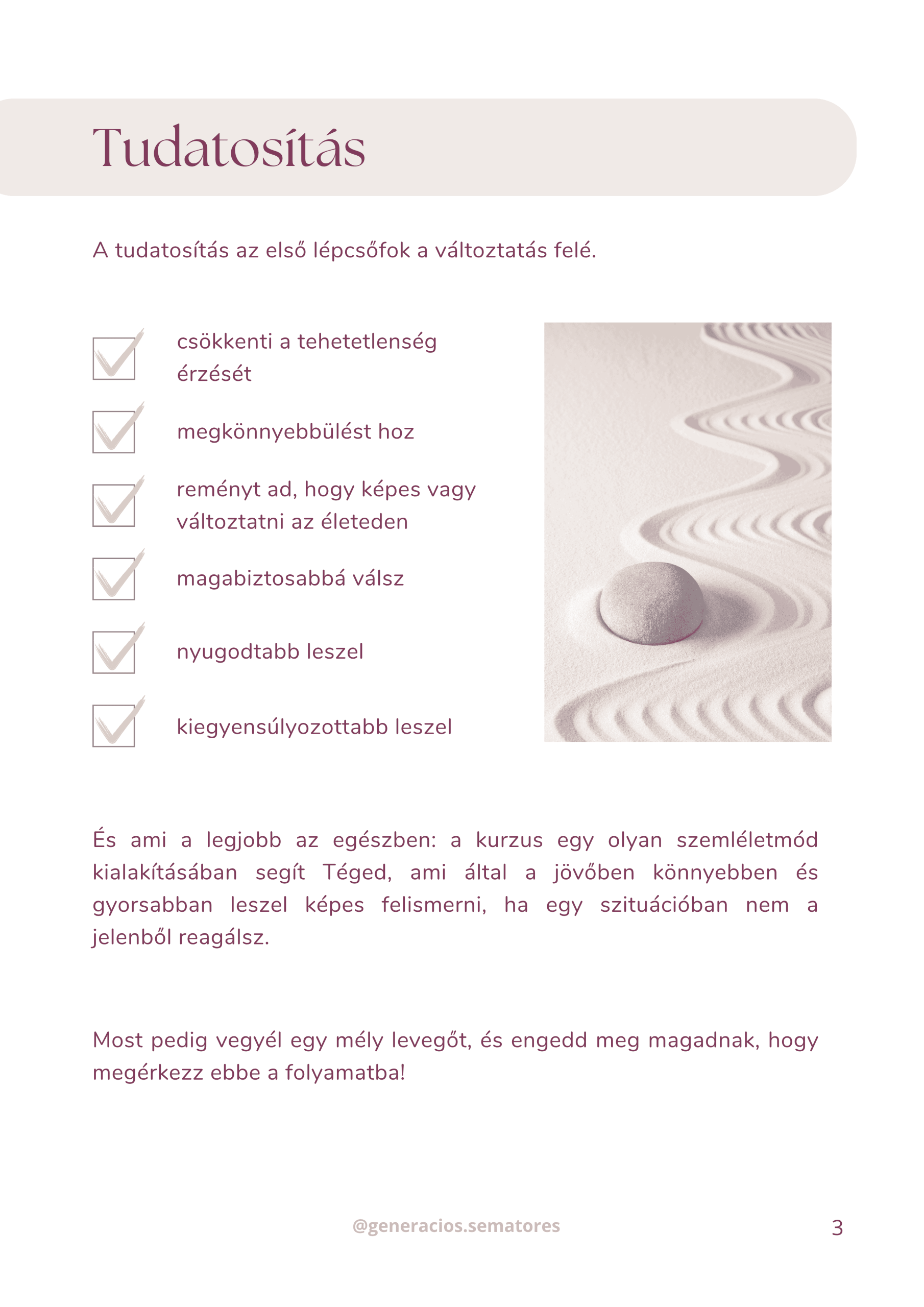 Nem ígérem, hogy minden gondod eltűnik, de azt igen, hogy megérzed: van választásod. Elindulsz azon az úton, ahol a tehetetlenség helyett erőt és nyugalmat találsz.